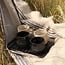 The handmade "Linea" plate is made of black fireclay with a high-quality transparant glaze.