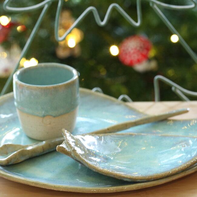 Tapas set composed of one cup or pot, one fish as a side plate and one plate BoomerangCan be used as a tapas set and so much more...