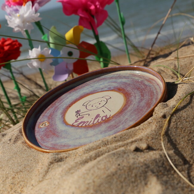The name of your child, grandchild, godchild, godchild, girl next door, boy next door, nephew, niece ... is carefully written with a brush in my own handwriting. This is baked in the glaze oven, making it dishwasher safe.