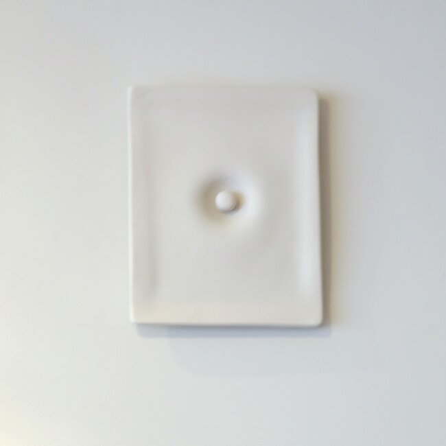 The piece is composed of various rectangular, hand-formed porcelain plates, each finished with a central porcelain bead. Depending on the available wall space, you can combine this piece with 2, 4, 6, 9, ... elements. It is a piece that requires space to be shown to its best advantage.