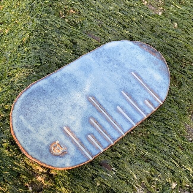 This handmade oval plate “Linea” is mainly used as a presentation of finger food, sushi, cheese, charcuterie, snacks, mignardises and pastries or cakes.