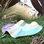 The "Wave" tapas dish is handmade from our natural white clay and glazed here in duo glazes Sunrise, mustard and mint.