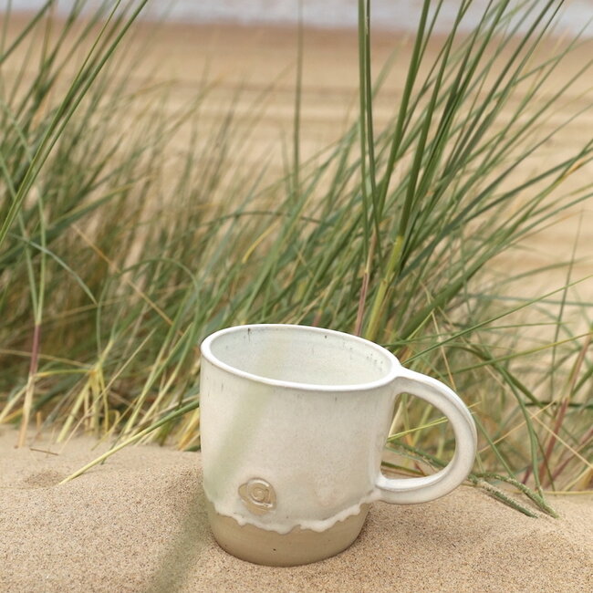 The high bucket is possible because the clay is stoneware clay and can withstand this high temperature. I have also specially designed the glaze recipe for a baking of 1250° and it is unique. This baking and making process determines that the “White Dunes” collection has a high quality, so that pieces jumping, cracking, ... are virtually nil.