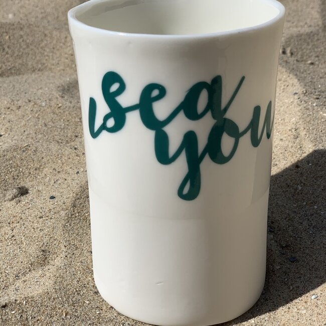 The "Columna" tube is a beautiful straight porcelain tube that is used for coffee or tea cup, sauces, tapas, chocolate mousse, finger food, snacks, vase, jar to use for something such as ballpoint pens for the desk,….On the inside, the jar has a completely transparent glossy glaze and on the outside the top border. For example, the white finesse of porcelain stands out nicely from the colored letters. The colored light blue letters are baked in a third tray with a transfer on the top board.