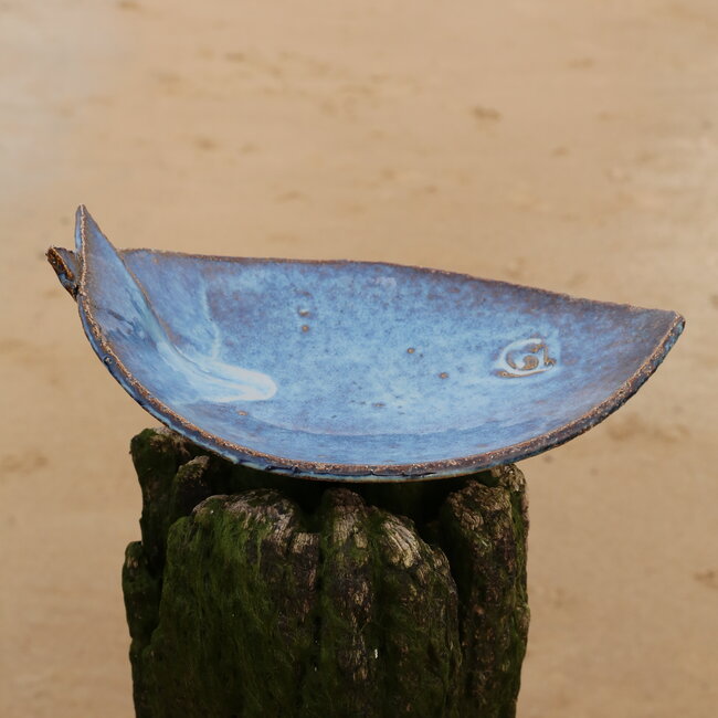 The fish-shaped dishes are available in four sizes to decorate your table in style. The fish are made with a beige chamotte clay. The finish is done with a beautifully structured blue floating glaze. The fish are baked in a high-baking glaze oven at a temperature of 1250 degrees Celsius, which means they are very strong and can certainly be cleaned in the dishwasher.