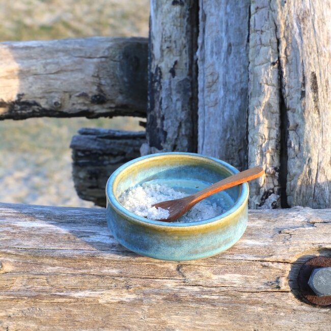 This ceramic salt dish is handmade with the turntable by ceramist and interior designer Ann Van Beersel for Artisann. My collection radiates imperfection and each dish is handmade differently and finished with care. The shape and the glaze are basically the same, but because everything is made by hand and I also want to show this clearly, no dish will be the same. This is my concept and creativity that I want to show clearly.