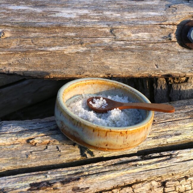 This ceramic salt dish is handmade with the turntable by ceramist and interior designer Ann Van Beersel for Artisann. My collection radiates imperfection and each dish is handmade differently and finished with care. The shape and the glaze are basically the same, but because everything is made by hand and I also want to show this clearly, no dish will be the same. This is my concept and creativity that I want to show clearly.