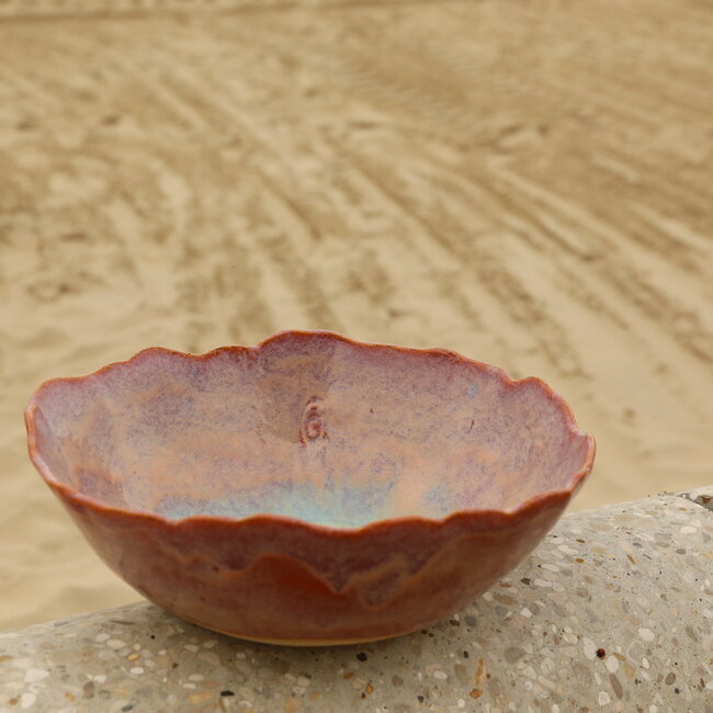 La coupe, coupe à fruits est fait d'une argile de chamotte naturelle et a une forme légèrement irrégulière. Façonné et fini à la main, sans l'utilisation d'un tour de potier, comme en témoignent les légères imperfections de la forme - qui soulignent le charme de l'artisanat artisanal.
