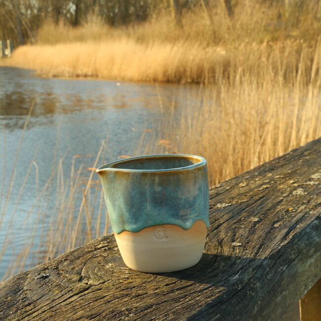 La collection "Menthe" est composée d'argile naturelle et est émaillée au pinceau avec un émail menthe pur légèrement brillant. Finition extérieure avec des gouttes de glaçure pour accentuer l'effet de coulure et l'irrégularité.