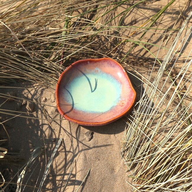 Petit plat creuse, une petite assiette authentique en céramique qui, en raison de sa couleur orange, vert, forme un joli contraste avec les aliments et est donc également agréable comme bol pour les sauces, le sel, le poivre, l'huile, les collations, les amuse-gueules, les tapas. Également en tant que soucoupe, porte-savon, pot-pourri ou herbes, c'est un plat pratiquement unique. Cela donne un accent à votre intérieur ou à votre table joliment dressée et rayonne de personnalité. Ce plat imparfait a une belle forme et est fini avec soin. La forme et le vernis sont les mêmes que la base, mais comme tout est fait à la main et que je veux le montrer clairement, aucun petite assiette, plat creuse ne sera le même. C'est mon concept et ma créativité que j'exprime clairement.