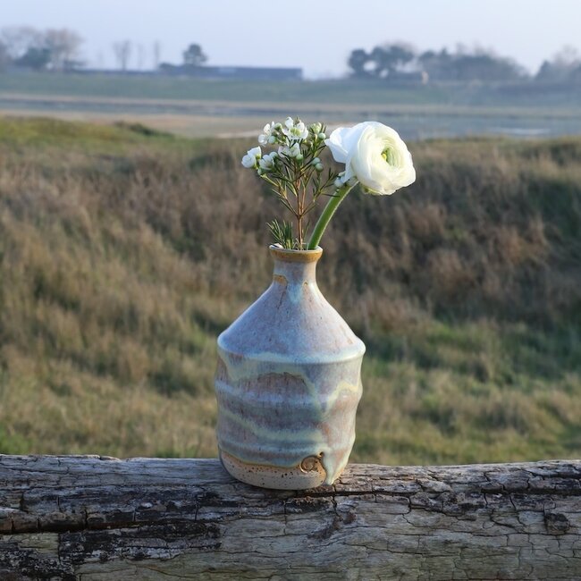 Parfois, une seule fleur suffit. Pour cela, il vous faut un vase à ouverture étroite, dans lequel la tige de la fleur reste bien droite. Avec une seule fleur, une plume, une fleur séchée, un brin d'herbe... ce petit vase est unique dans sa simplicité et également très joli à disposer en groupe.