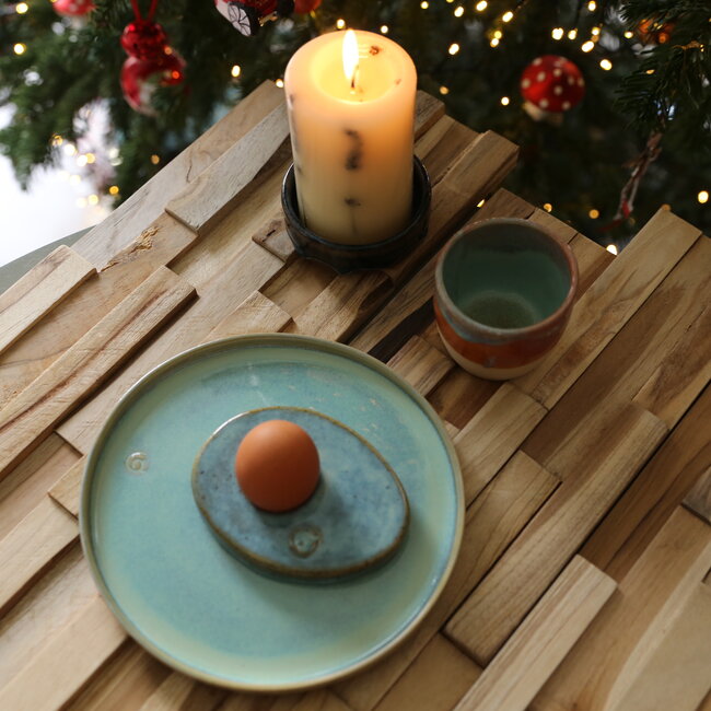 Dit setje van de Lagune collectie blinkt uit door zijn eenvoud, functionaliteit en zijn mooie groene kleur. Het is samengesteld uit 1 ontbijtbordje "Lagune" (20cm), 1 eidopje "Munt" en 1 tas M "Sungreen" (8cm)