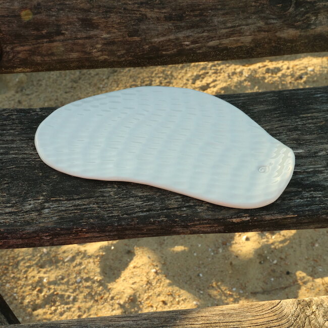 Ik heb er een structuur ingedrukt waardoor je een golvend effect verkrijgt. Het heeft een opstaand randje voor een betere greep en elegant te verplaatsen.