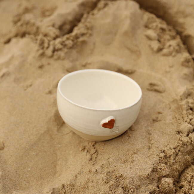 Handgemaakte keramische kom met een uniek hartje van het koffieservies "White Heart"