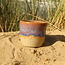 Uniek, exclusief en elegant handgemaakt tasje voor koffie, thee, matcha, ... gemaakt in onze glazuur Sunrise. Speciaal in model, afgewerkt met golvende lijnen. Het tasje "Léonore" wordt gedraaid als een cilinder op de draaischijf. Ik realiseer zo een tasje in verschillende etappes nl. de klei wordt eerst gecentreerd, een kuiltje maken, de wand optrekken en als laatste wordt er met een speciale houten tool een golvende beweging in gedrukt.